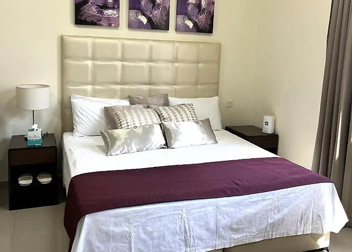 The 40 m^2 Miracle Garden Suite apartment is located in Dubai. It is a 1-bedroom accommodation with an outdoor swimming pool, a sun terrace and a sauna. Dubai Sports City lies 2.5 km from the apartment, while the Motorsport Events Dubai Autodrome is approximately a 15-minute stroll away.